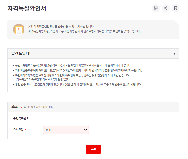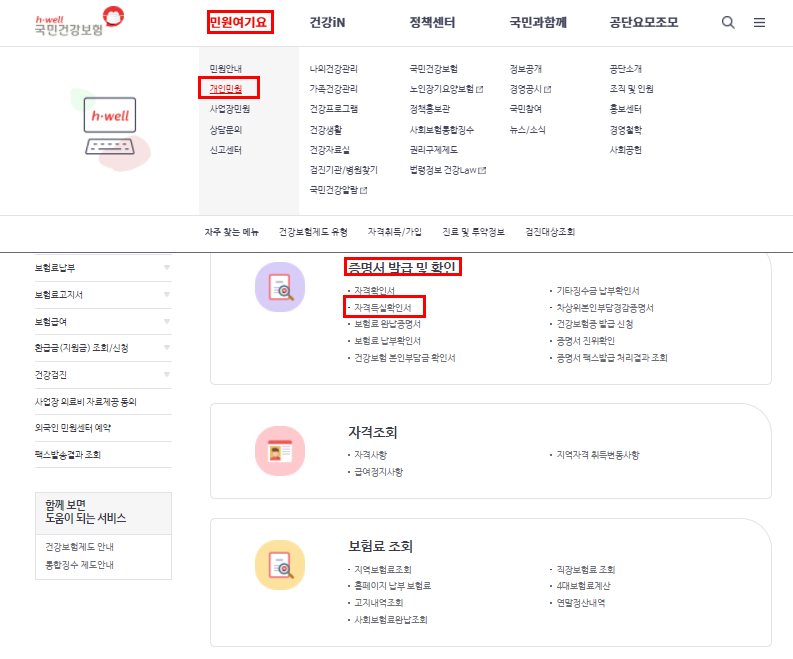 건강보험관리공단 건강보험 자격득실 확인서 발급방법