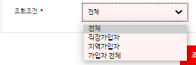 3. 로그인하신 후 다시 자격득실 확인서를 클릭하시면, 본인의 자격득실 확인서를 발급받을 수 있는 화면이 나옵니다. 본인의 주민등록번호 확인, 조회 조건 전체, 직장가입자, 지역가입자, 가입자 전체를 선택해주시고 하단 조회를 눌러주세요.