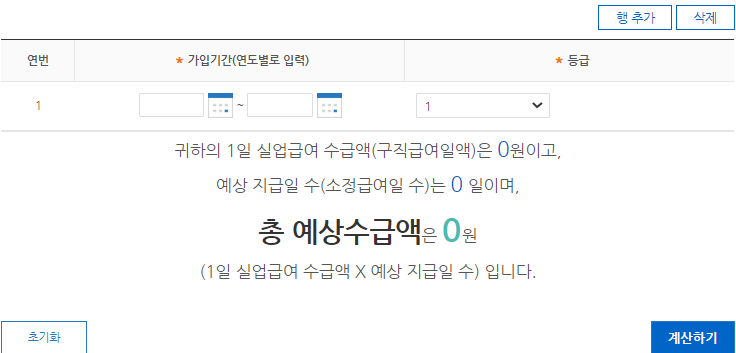 - 일반근로자 실업급여 모의계산기