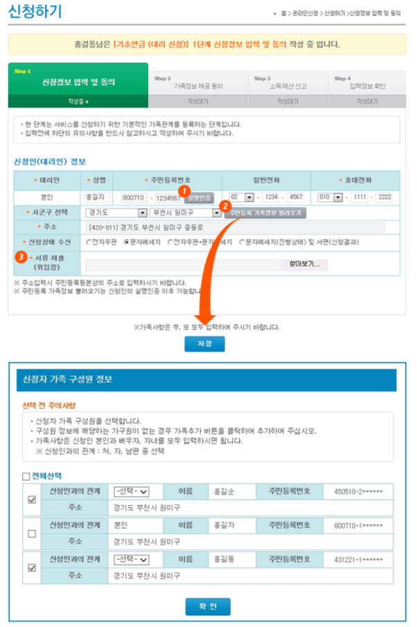 5. 1~5번 순서대로 입력을 진행해주세요. (가족정보 제공 동의)