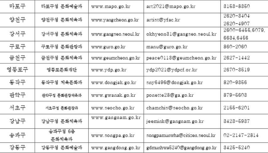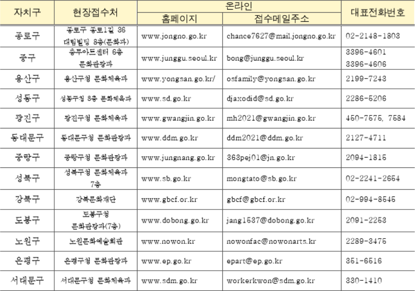 - 온라인 접수 : 각 자치구별 담당자 이메일로 제출