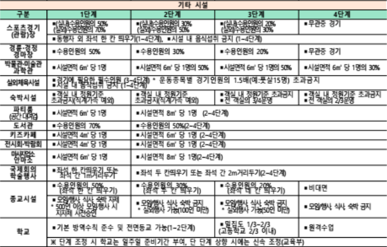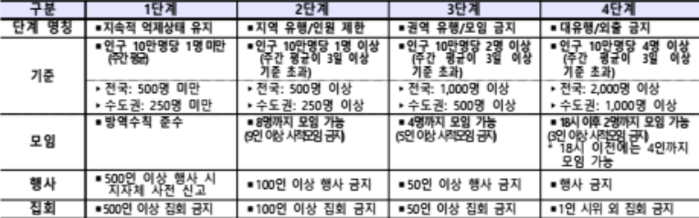- 사회적 거리두기 4단계 주요 내용