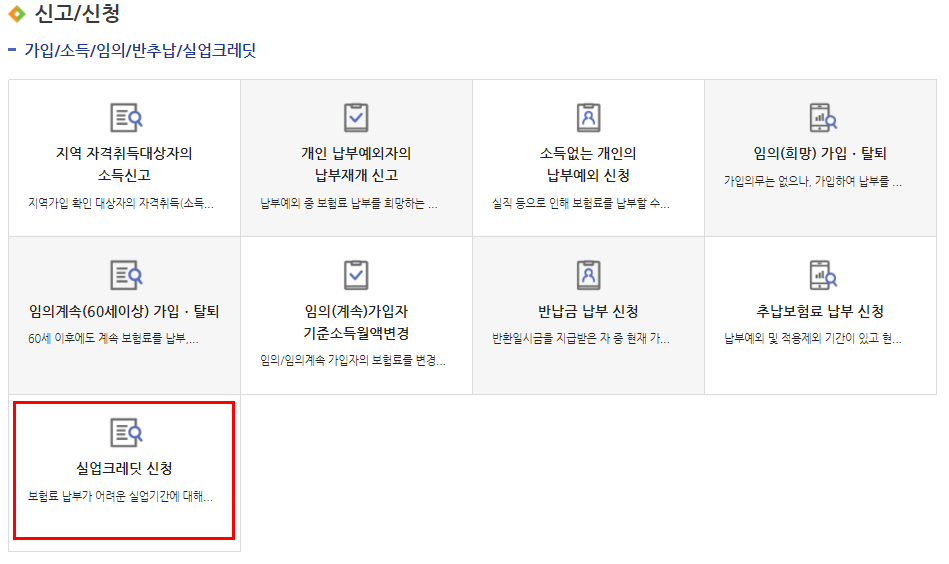 실업급여 국민연금 실업크레딧 납부 신청안내
