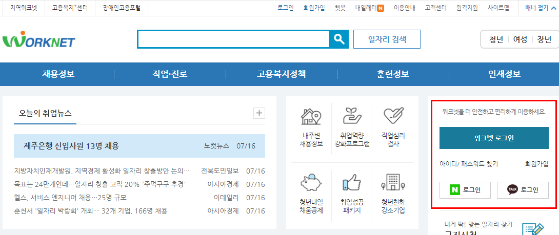 2. 워크넷에 접속하셔서 아이디가 없으시다면, 회원가입을 진행하신 후에 로그인을 해주세요.