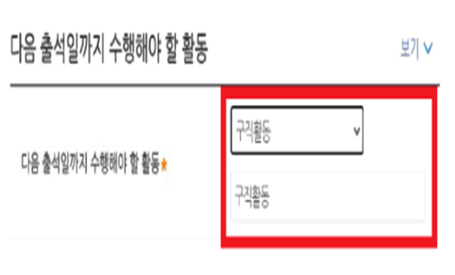 7. 첨부까지 하신 다음다음 출석일까지 수행해야 할 활동을 입력해주세요. 구직활동, 직업훈련수강, 직업심리검사 등 다음 출석일까지 수행해야 할 활동을 선택하고, 구체적인 내용을 기재해주세요.