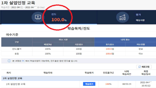 1차 실업인정 (교육자료 자체 학습 신청방법)
