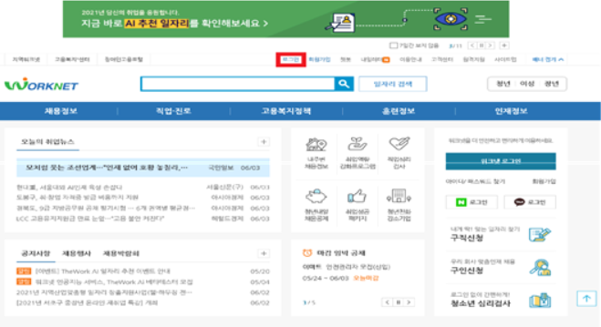 1. 워크넷 홈페이지 접속 후 로그인을 진행해주세요.