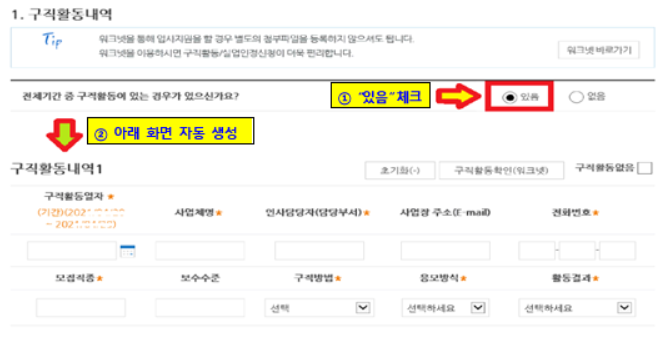 1. 구직활동 (워크넷 입사지원, 현장 구직 등) 방법