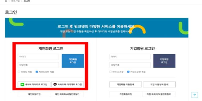 1. 워크넷 홈페이지 접속 후 로그인을 진행해주세요.