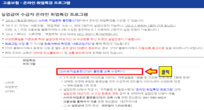 실업급여 1차 실업인정 신청 시 온라인 동영상 (STEP)에서 '1차 실업인정 교육 수강', 1차 실업인정 교육자료 자체 학습 2개 중 하나를 선택하여 진행하셔야 합니다. 1차 실업인정 절차 방법과 신청