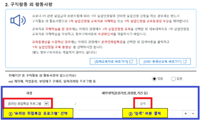 2-1 구직활동 외 활동사항 (온라인 취업특강 수강 방법)