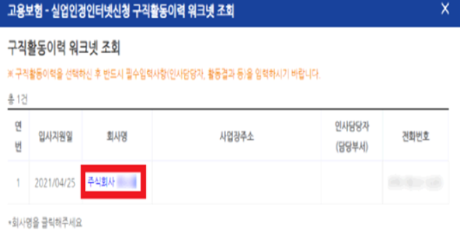 4. 구직활동으로 워크넷에서 입사지원 한 내용이 있는 경우 "구직활동 확인 (워크넷)"을 클릭해주세요.