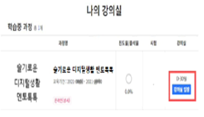 7. 나의 강의실에서 강의실 입장을 클릭해주세요.