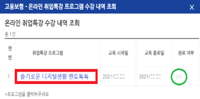 | 구직활동 외 활동사항 | 고용보험 홈페이지에서 온라인 취업특강 수강 | ||