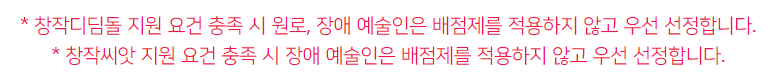 - [신진 예술인 예술활동 증명]을 완료한 예술 창작활동을 준비 중인 신진 예술인이 지원대상입니다.