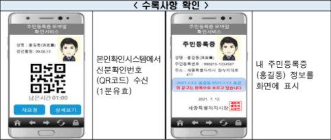 2. 주민등록증 모바일 확인서비스를 통해 본인의 주민등록증 수록사항 확인 또는 타인의 주민등록증 진위확인