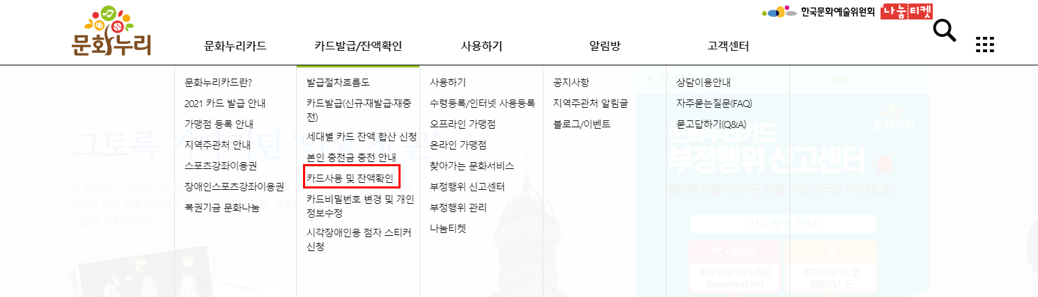 2021년 문화누리카드 사용처 및 신청방법 잔액조회