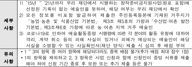 | 농.어촌 지역 예술인 | 주민등록등본 반영 | ||