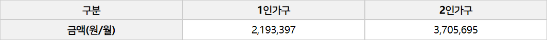 - 소득인정액 : 사회보장 정보시스템을 통한 신청인 가구의 소득. 재산 조사를 통해 산정합니다.